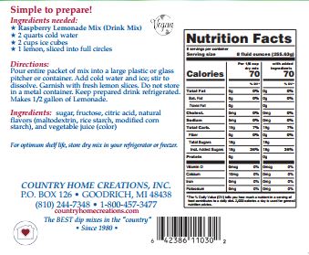 On steamy hot days when you need to cool down fast, our raspberry lemonade mix is just what you need. This mix delivers the perfect balance of sweet and tart all natural flavors and colors - no artificial ingredients, for a cool drink that will transport your taste buds. Keep plenty on hand for impromptu gatherings with friends this summer! Makes 1/2 gallon.