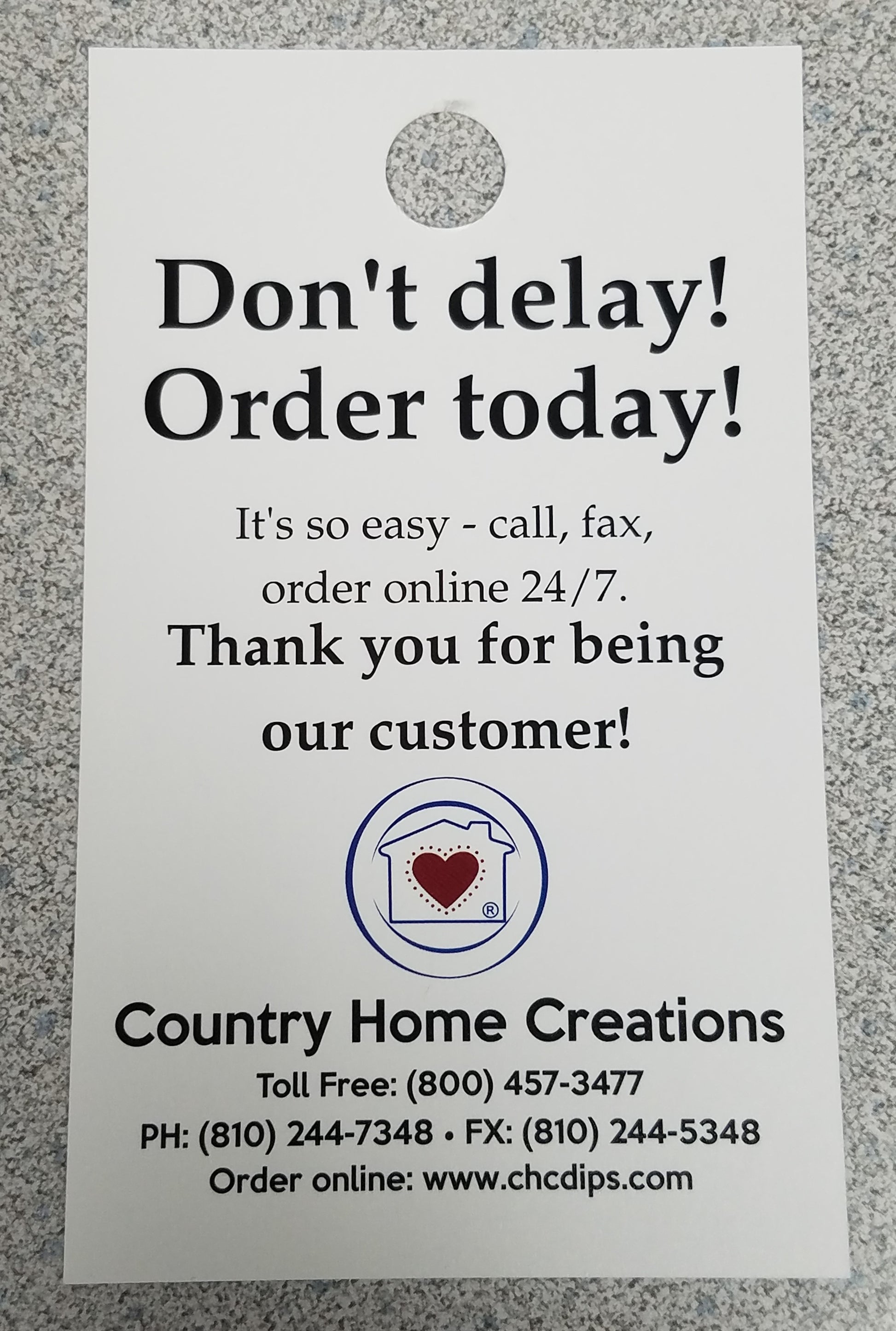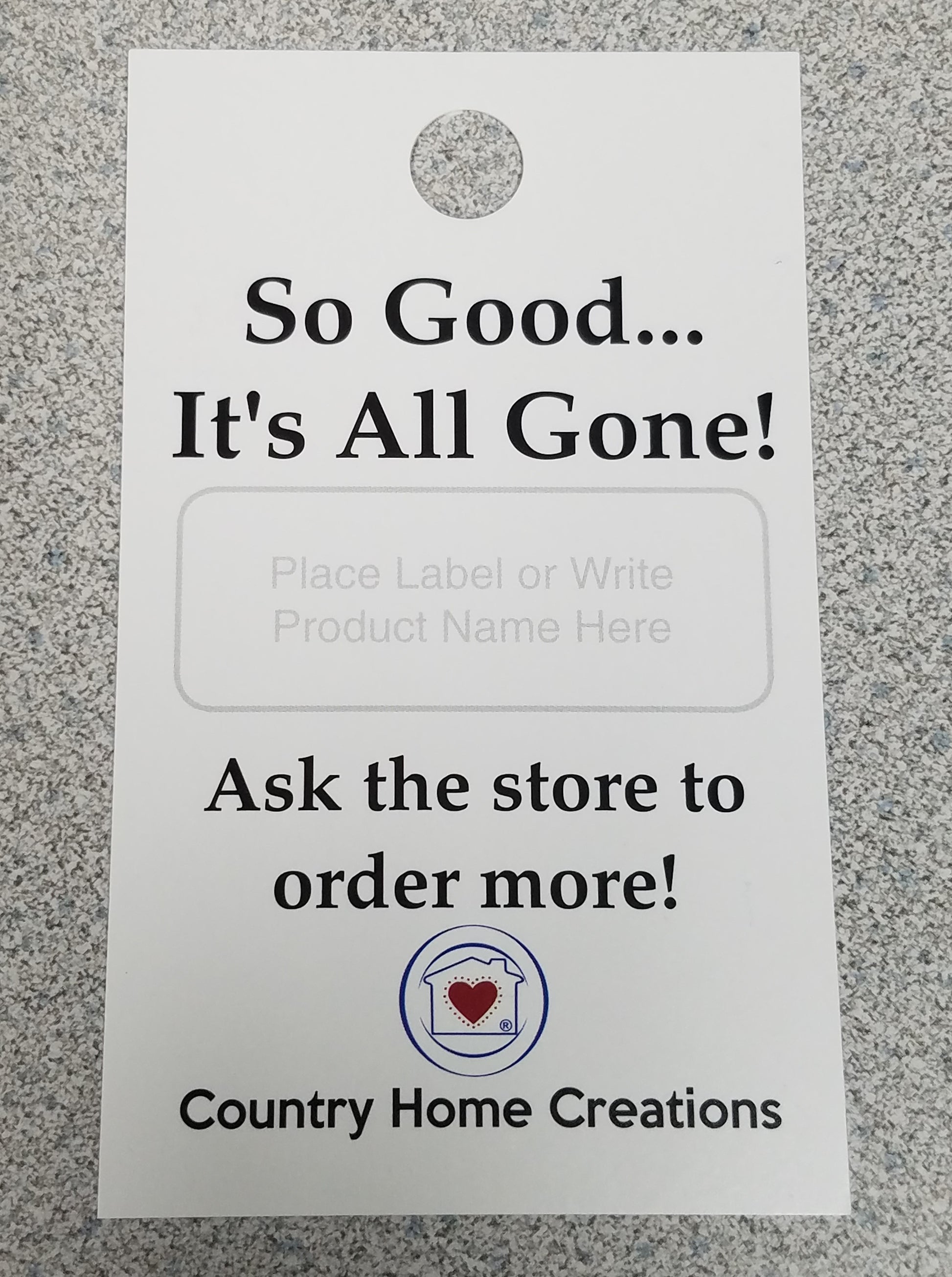 Inventory tags to use behind your hanging product to let you know when and what you are out of.