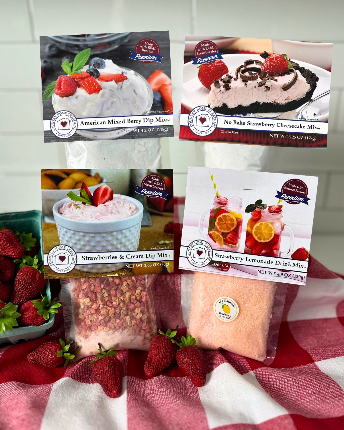 Bring the sweet, juicy flavors of Summer to your retail space! You will receive 6 each of 4 different Country Home Creation mixes. This collection makes an easy set up for a seasonal strawberry-themed display. Capture the essence of strawberry season with the Strawberry Patch Collection!